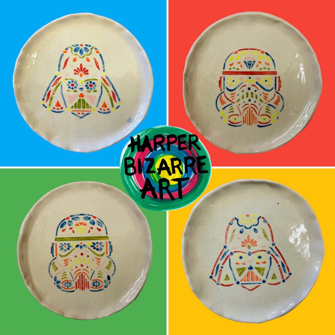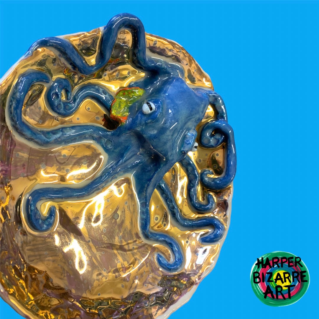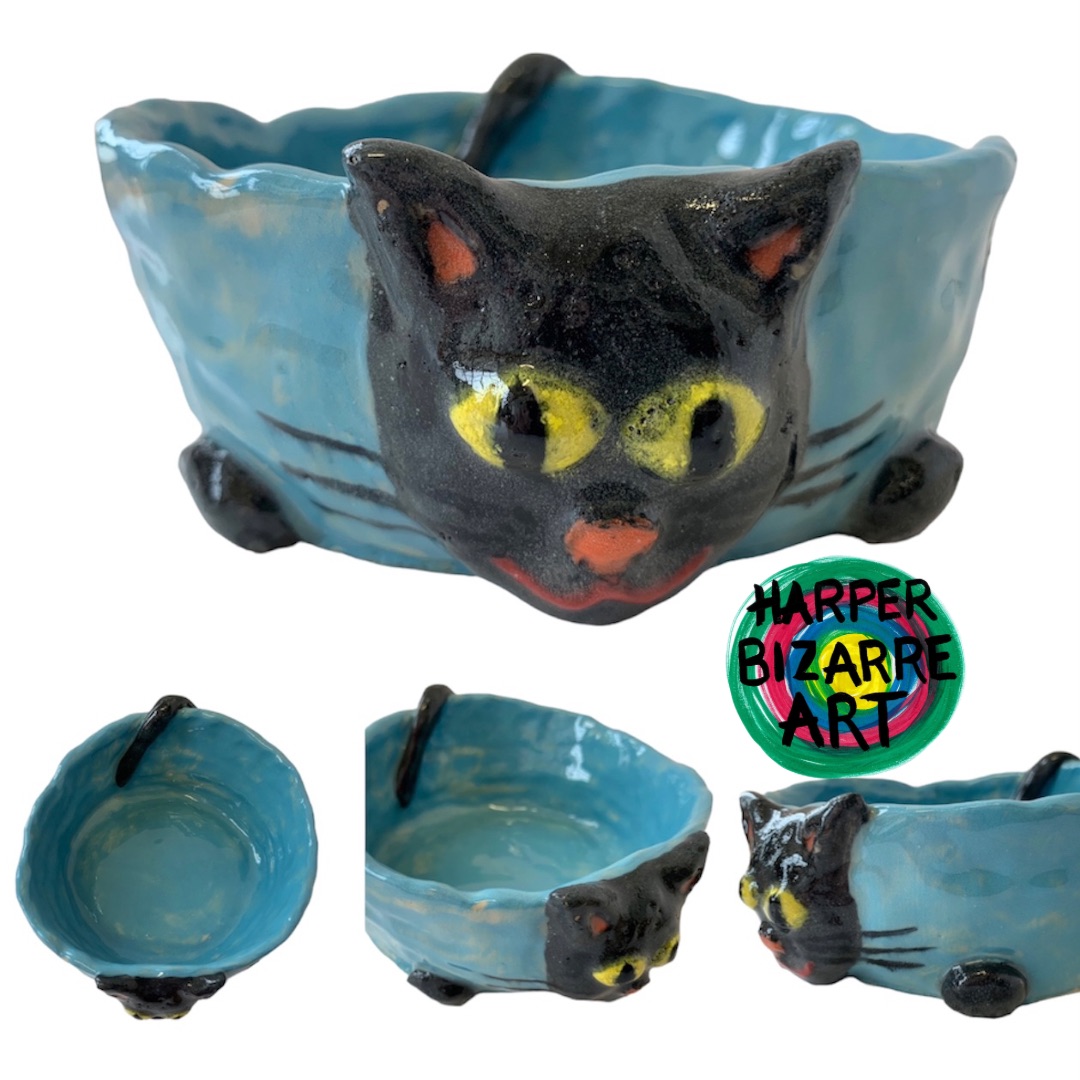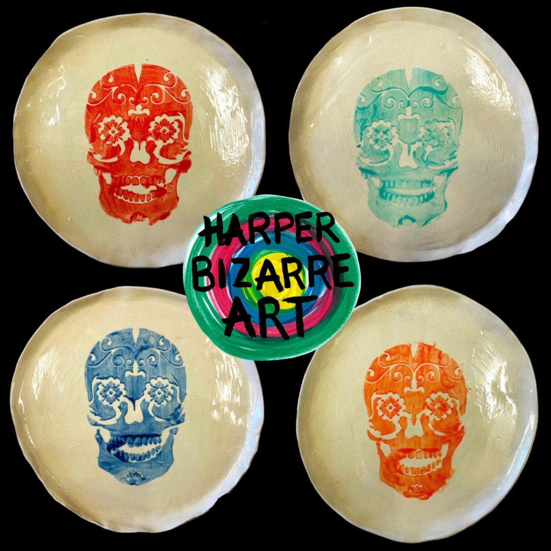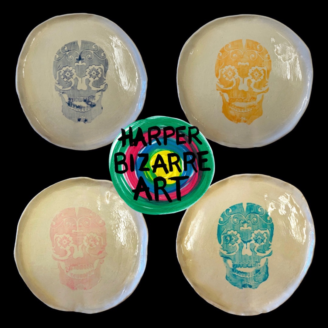 You can view a selection of my ceramic works here, all were designed and handmade by Harper Bizarre Art, and some are available in my online shop.