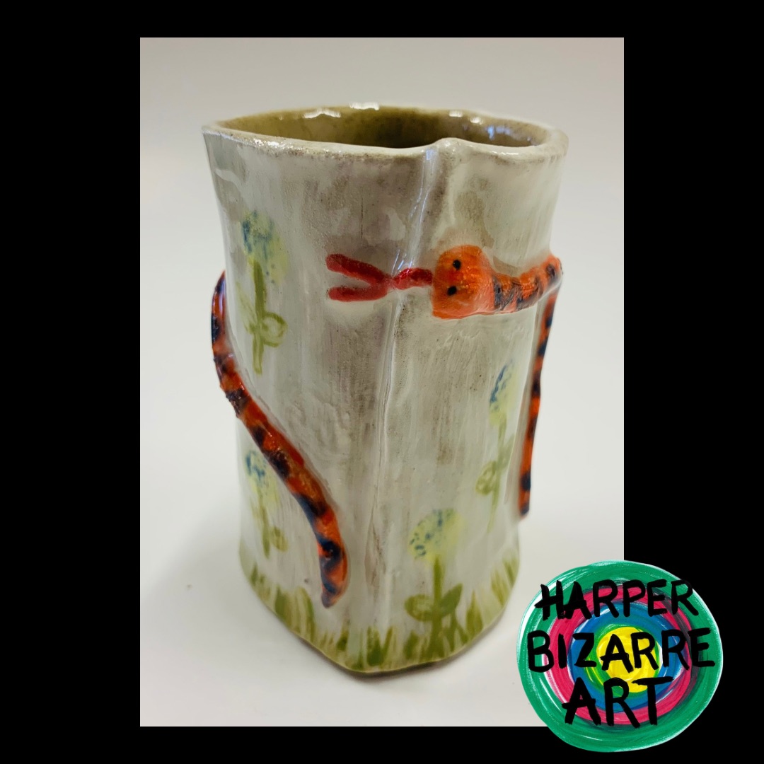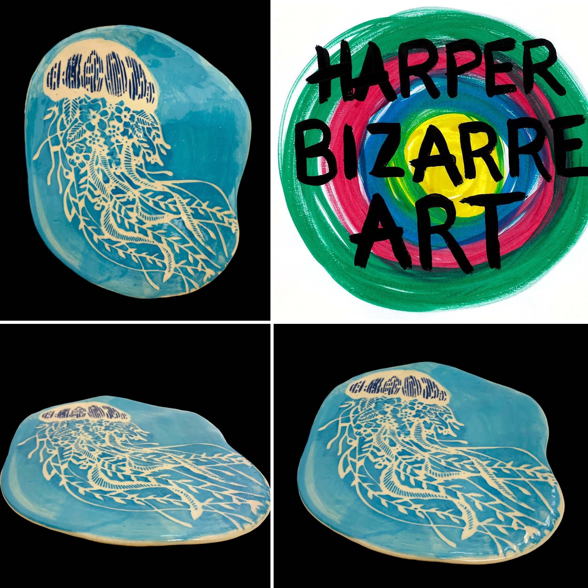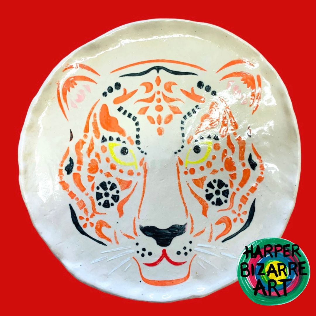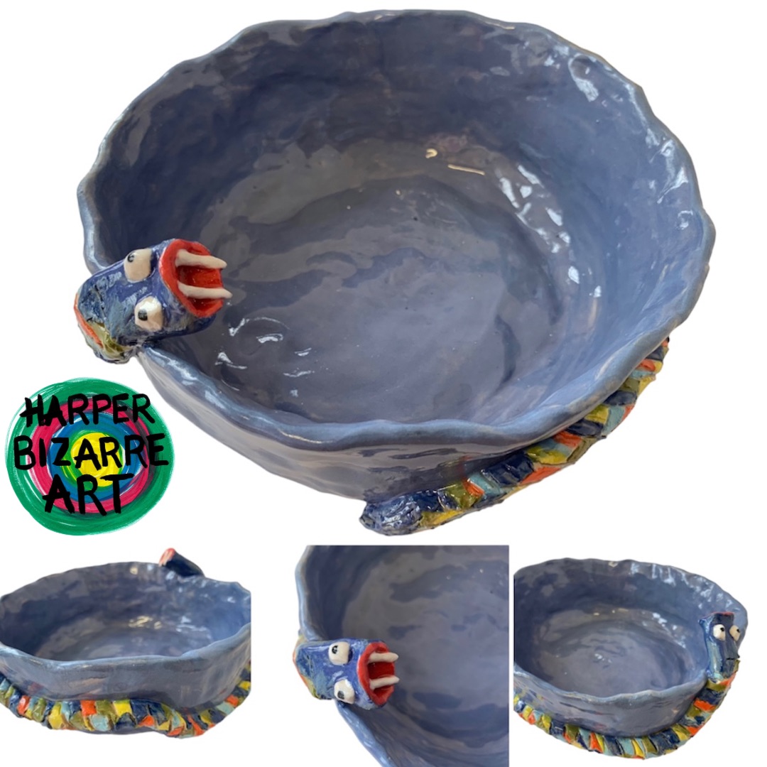 You can view a selection of my ceramic works here, all were designed and handmade by Harper Bizarre Art, and some are available in my online shop.