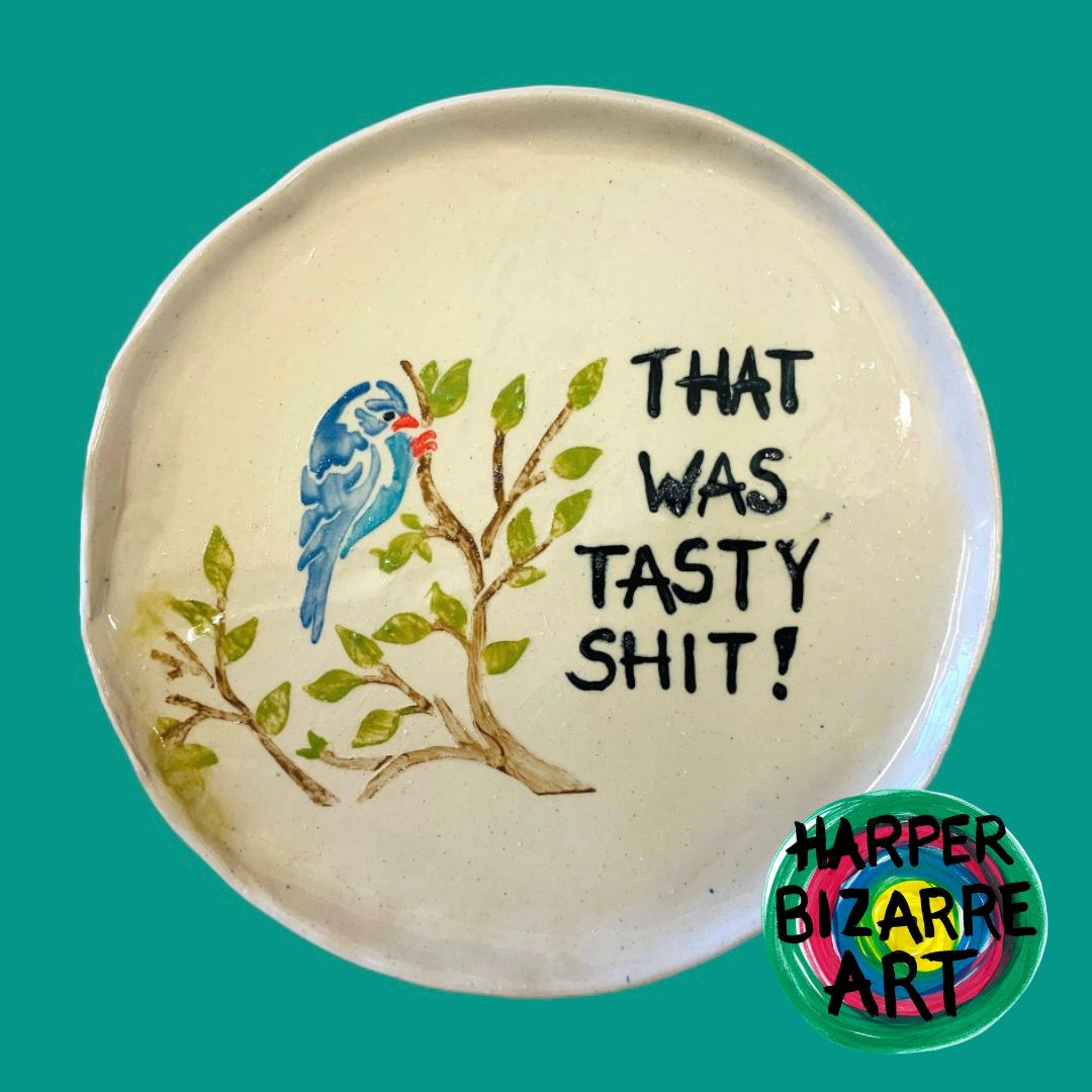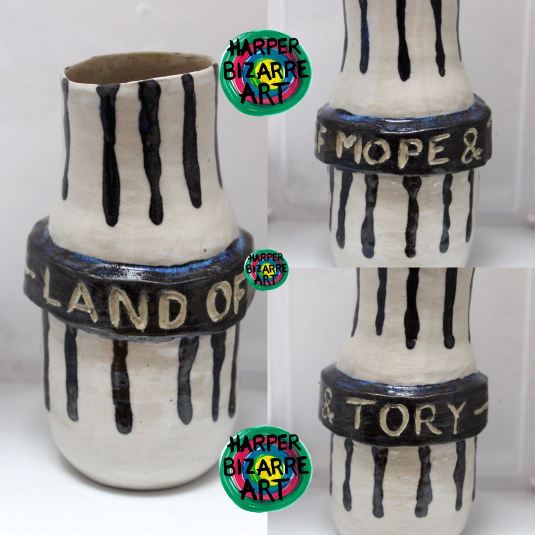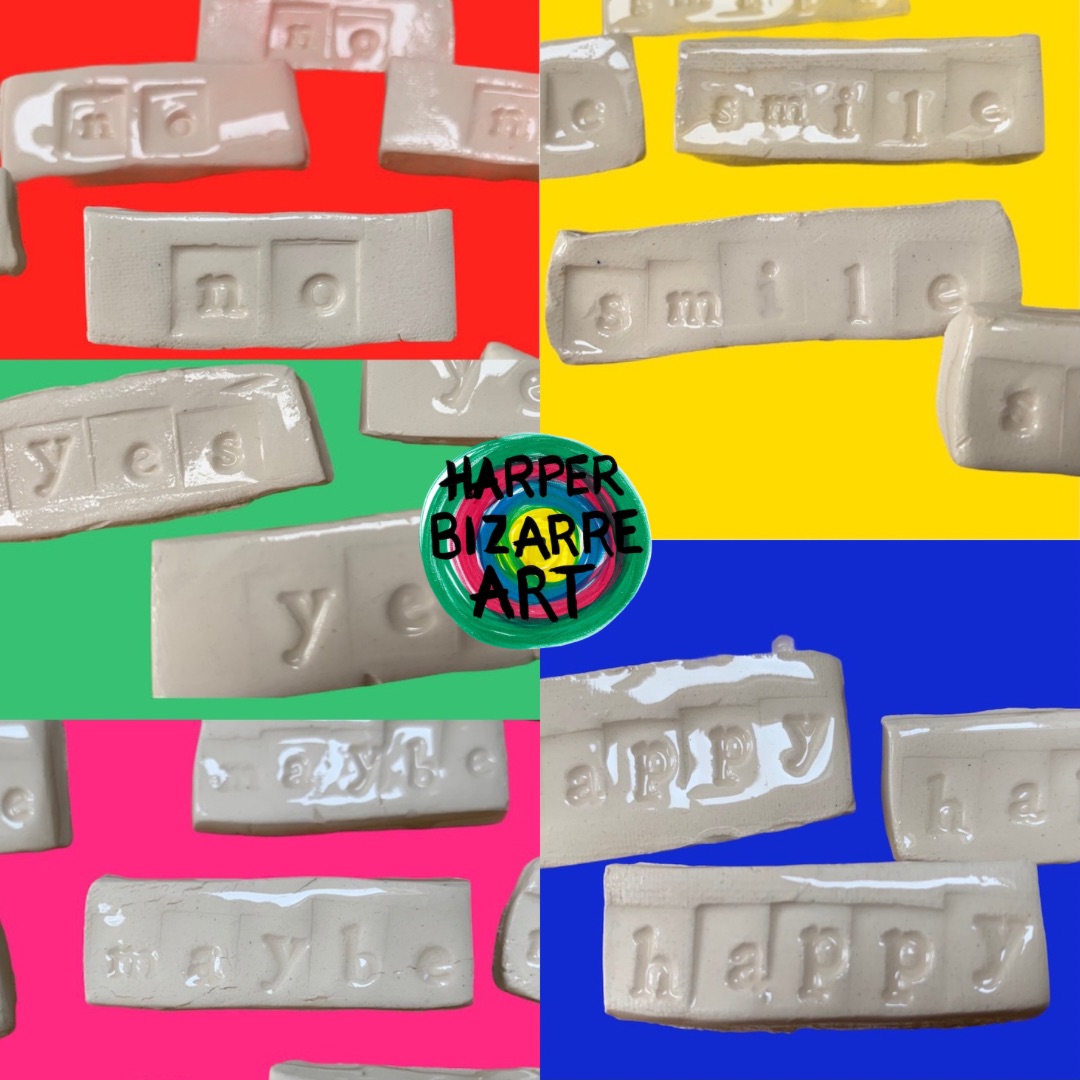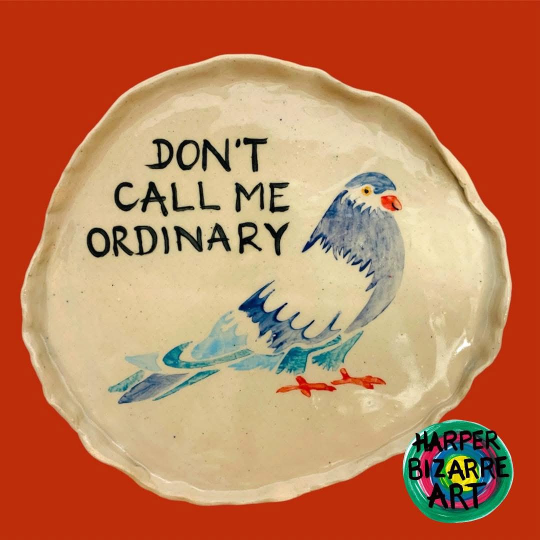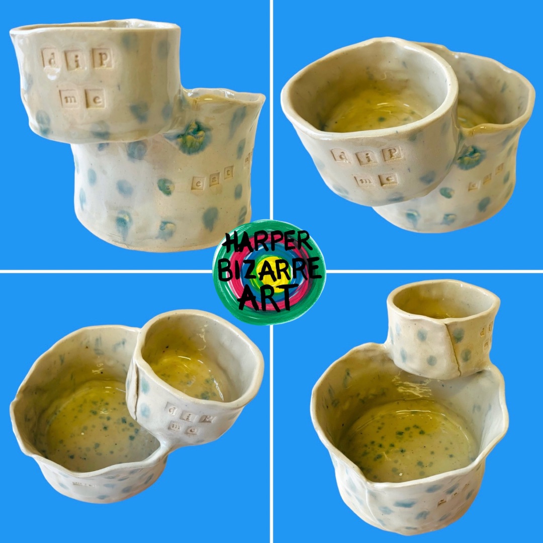 You can view a selection of my ceramic works here, all were designed and handmade by Harper Bizarre Art, and some are available in my online shop.