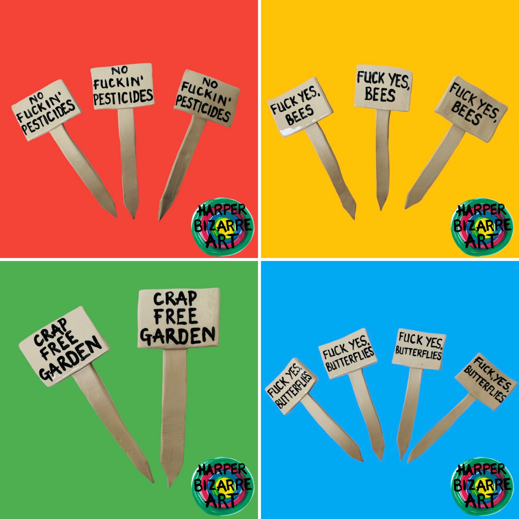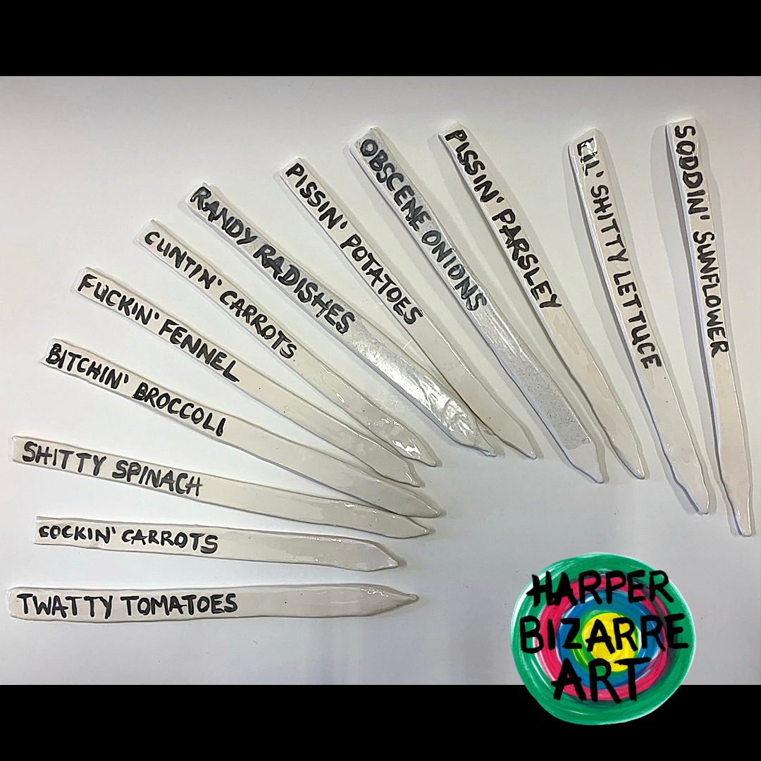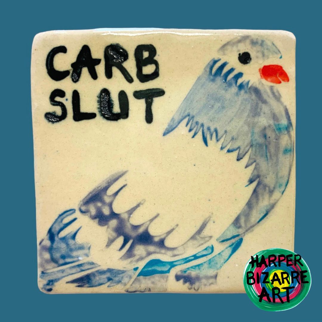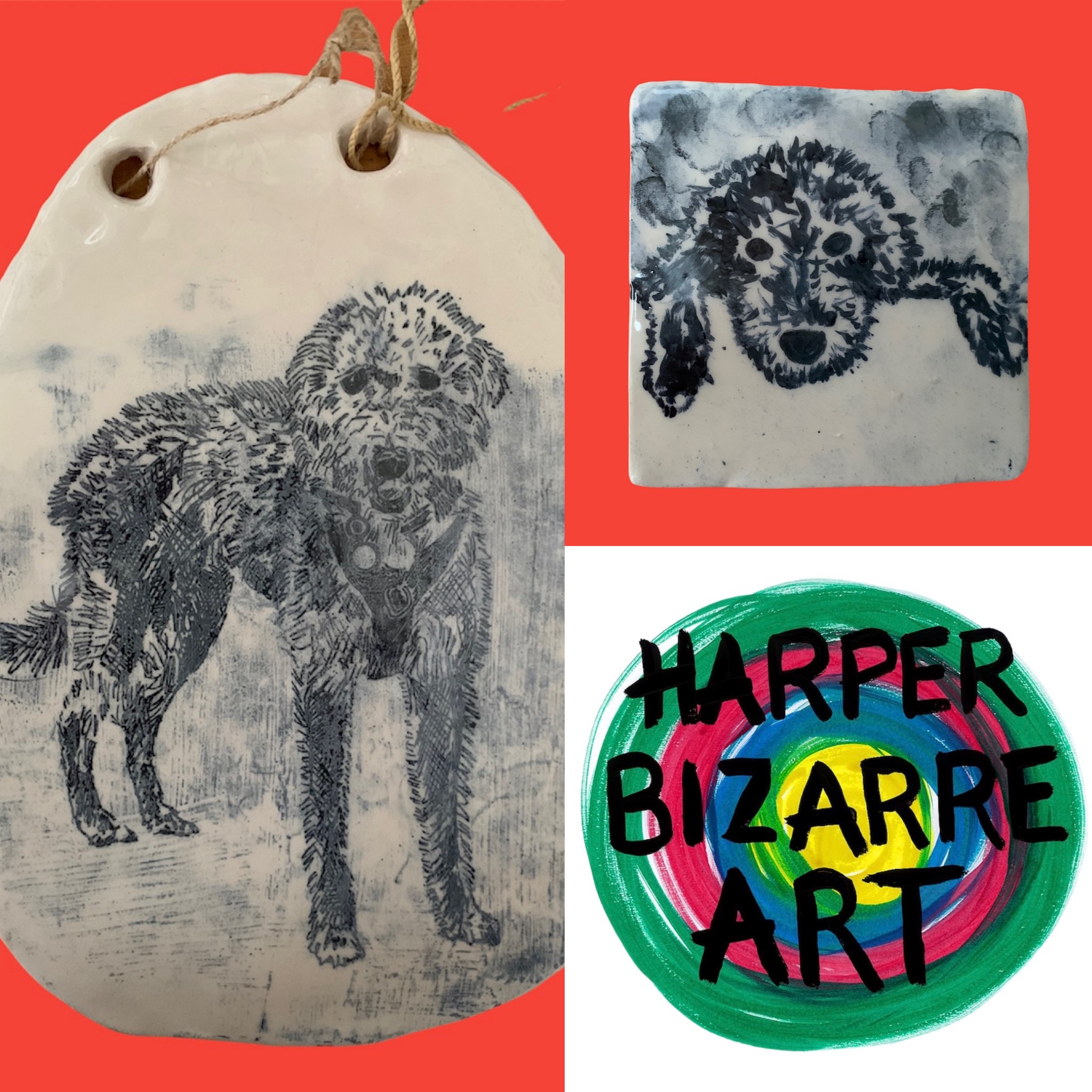 You can view a selection of my ceramic works here, all were designed and handmade by Harper Bizarre Art, and some are available in my online shop.