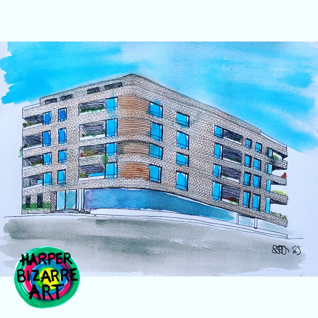 Commissioned artwork of the headquarters for the Greenwich Cooperative Development Agency building. 2023.