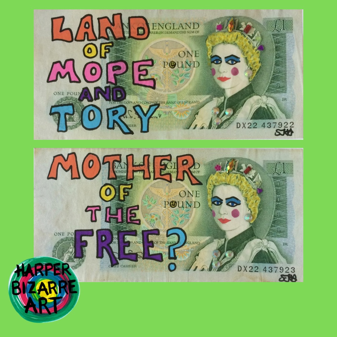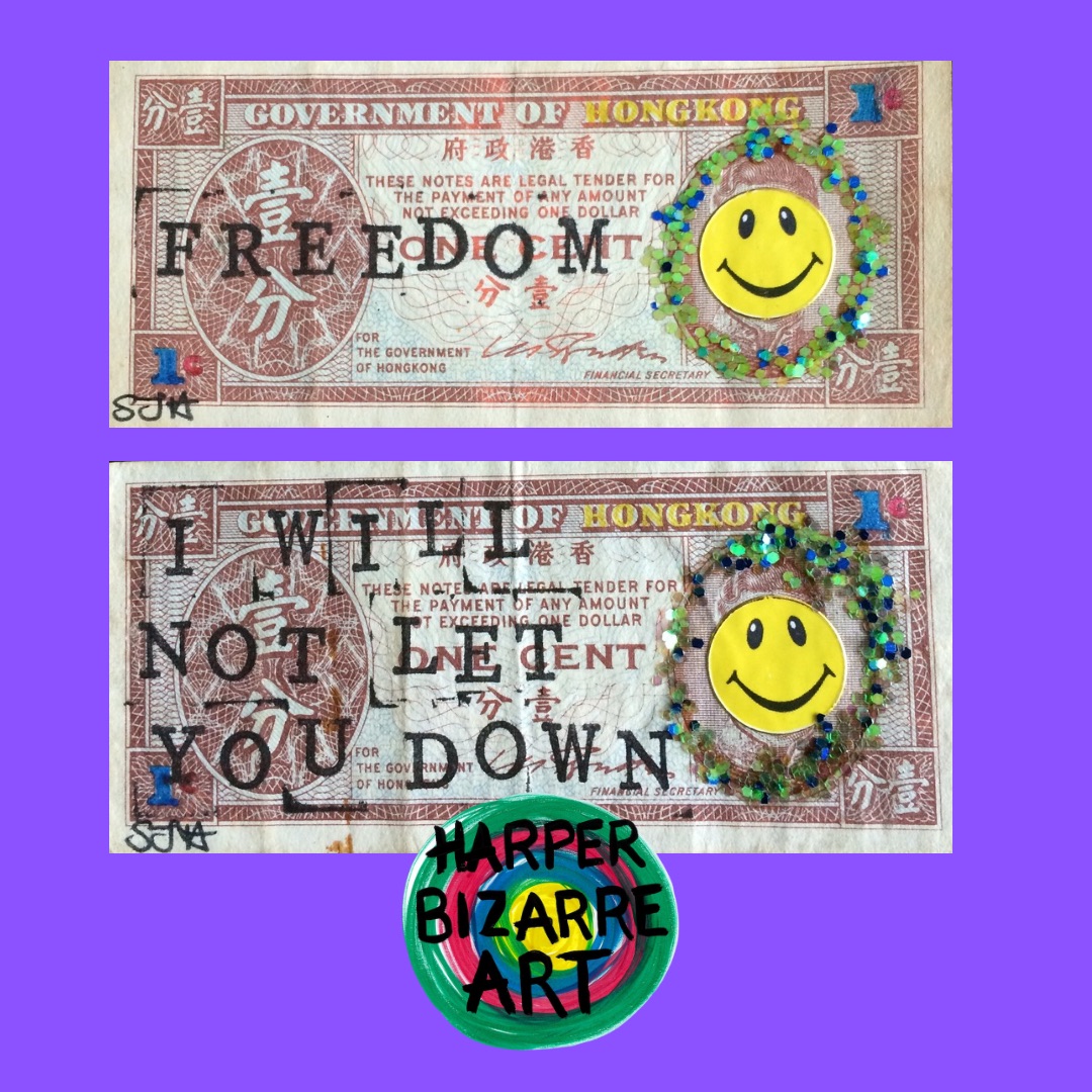 Money art is a form of revolutionary, political protest that has a long history across the world. Banknotes and other forms of currency have been defaced in order to state and share a message. Historically, those that have defaced currency include the Suffragette movement. Nowadays, it is not only viewed as a valid form of protest, but also a collectable art form.