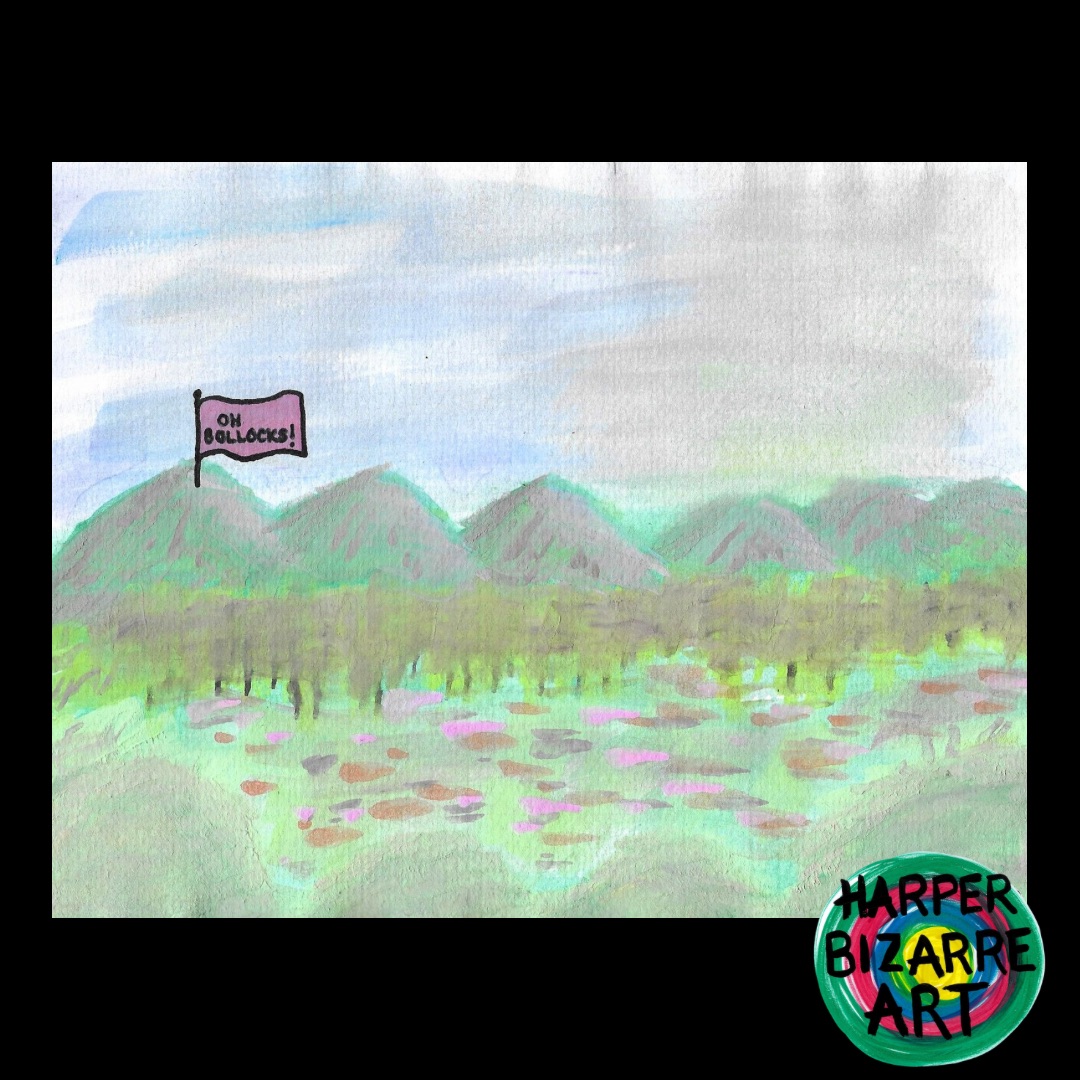 Commissions also taken and can include bespoke greetings cards, illustrations of your favourite place, ‘Sweary Landscapes’, or other custom designs.