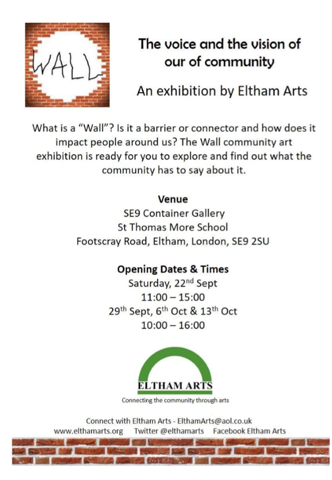 - SEPTEMBER 2018 – SE9 CONTAINER GALLERY, LONDON, UK: My ‘Wall Art Is Forbidden’ mixed media mosaic features in The Wall exhibition, curated by Eltham Arts.