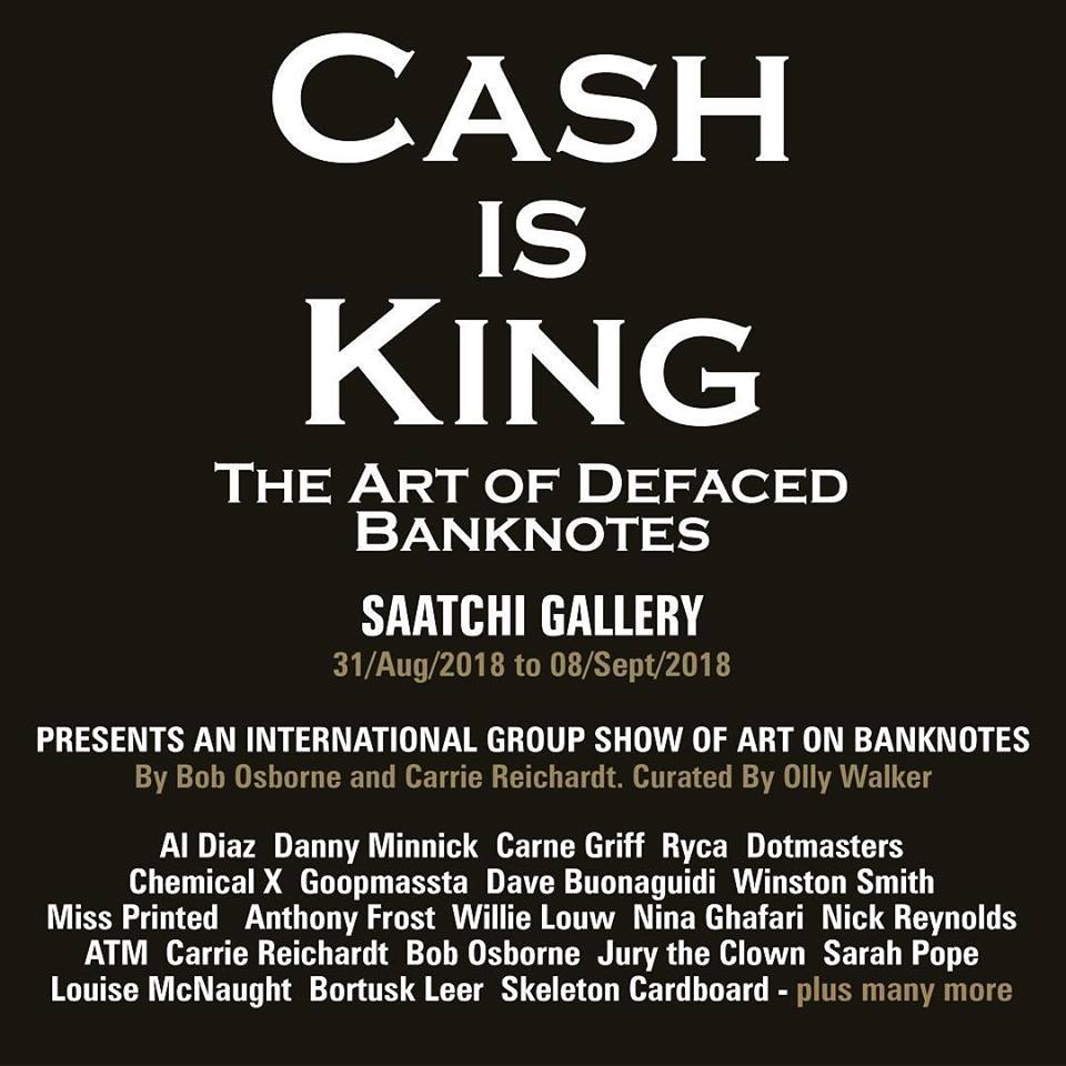 - AUGUST 2018 – SAATCHI GALLERY, LONDON, UK: One of my pieces of money art (‘Land Of Mope & Tory’) features in the Cash Is King exhibition.