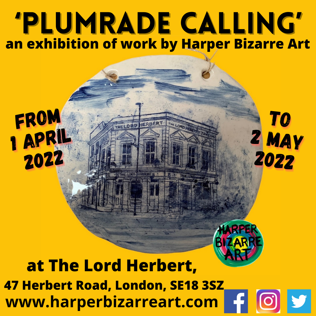 - April to May 2022 – PLUMRADE CALLING solo exhibition at The Lord Herbert, London, SE18, U.K.