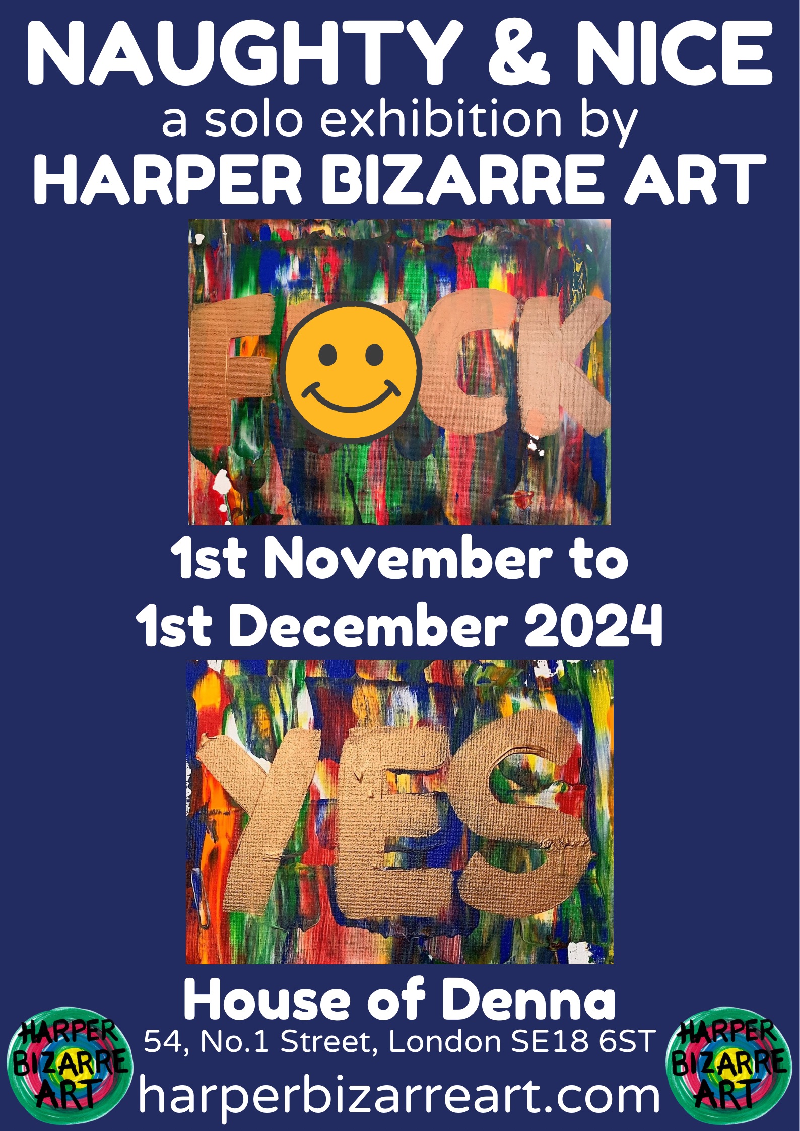 - November 2024 – NAUGHTY AND NICE solo exhibition at the House of Denna, London, SE18, U.K.
